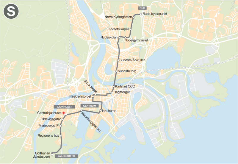 - Inre Hamn (Linje S) (stängd tills vidare för linje S under tiden arbetet med Karlstads resecentrum pågår)