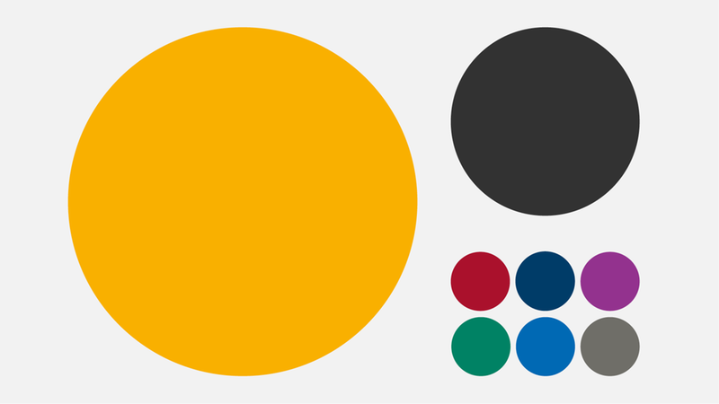 För att möta de tillgänglighetskrav vi har måste du vara noga med att följa våra riktlinjer för varje färg. Knappen indikerar vilken färg på text som bör användas för bästa kontrast och läsbarhet.
